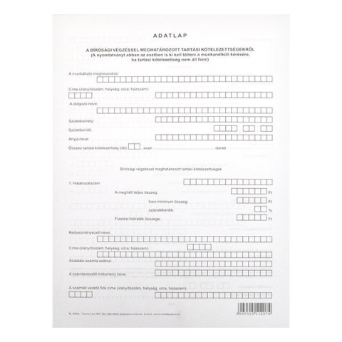 Nyomtatvány igazolás munkanélküli bírósági Bírósági végzéssel megállapított tartási kötelezettségről. A/4 méretű, 2 lapos.