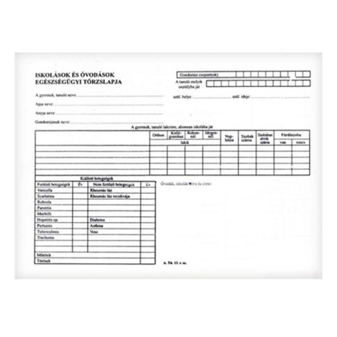 1 kép - Nyomtatvány iskola és óvodai egészségügyi törzslap