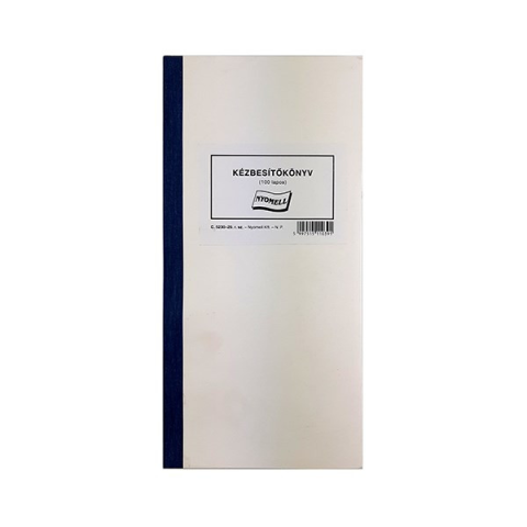 Nyomtatvány kézbesítőkönyv Kézbesítőkönyv A/4 méretű, álló, 100 lapos. Minőségi belív, karton fedlap. Kiszerelés: 5 db/csg.