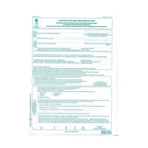 Tedd fel kérdésed a(z) Nyomtatvány külföldi utas áfa visszaigényélés új termékről!
