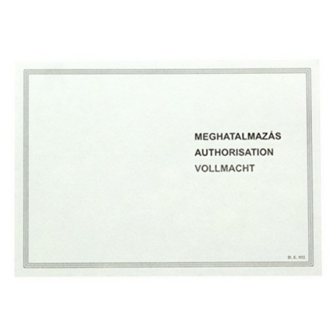 Nyomtatvány meghatalmazás gépjármű használatra A/6 Meghatalmazás gépjármű használatra. A/6 méretű, fekvő, 1 lapos. Kiszerelés: 100 db/csomag.