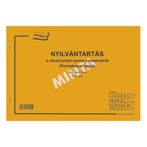 Nyomtatvány permetezési napló D.E.904/V Permetezési napló, 25X3 példányos, A/4 fekvő