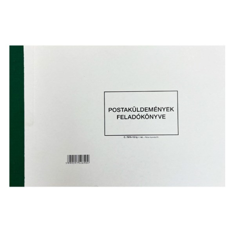 Nyomtatvány postaküldemények feladókönyve PATRIA A/4 fekvő 150 lap Postaküldemények feladókönyve. A/4 méretű, fekvő, 150 lapos. Minőségi belív, karton fedlap, tartós tűzött kötés. Postakönyv. Kiszerelés: 10 db/cs.