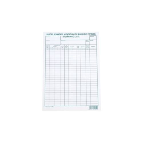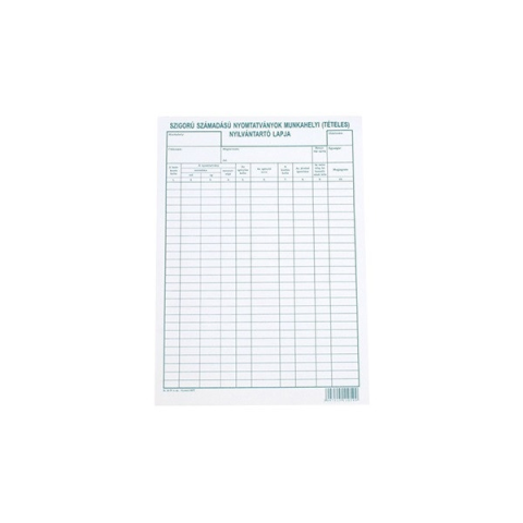 Szigorú számadású nyomtatványok munkahelyi nyilvántartó lapja.
