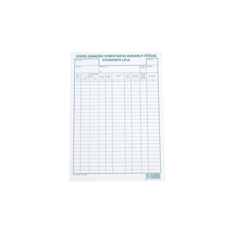 Szigorú számadású nyomtatványok munkahelyi (tételes) nyilvántartó lapja A/4 álló karton A/4 álló