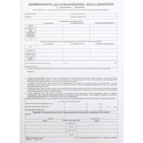 - Nyomtatvány üzembentartói szerződés A/4 4pld