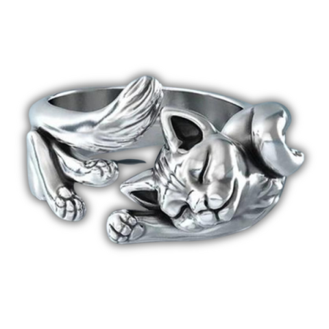 Ezüst nyújtózkodó cicás gyűrű állítható méretben. Tökéletes ajándék cicabarátoknak, stílusos és egyedi kiegészítő mindennapokra