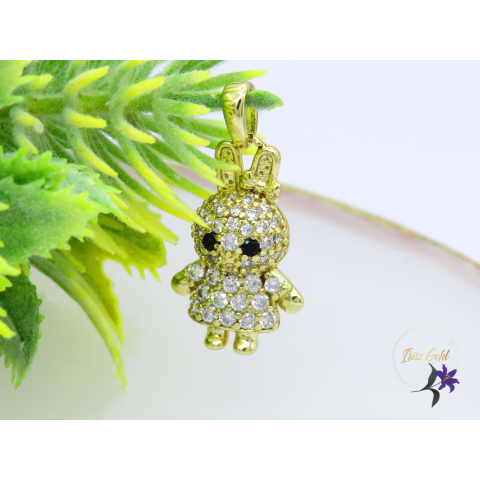 Gold Filled nyuszi medál mini cirkóna kövekkel díszítve Szin: 14K Méret:25x12mm