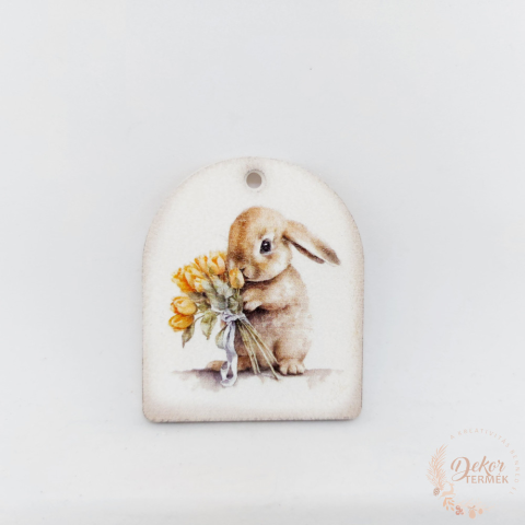 Nyuszi tulipáncsokorral - fa tábla dekorációs kellék 1 kép