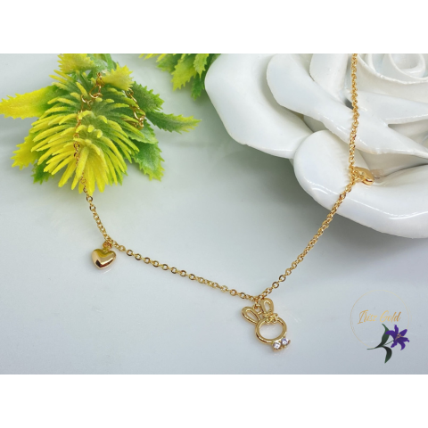 Vékony láncon nyuszi és sziv diszitőkSzin: 18K Méret: 18+3cm