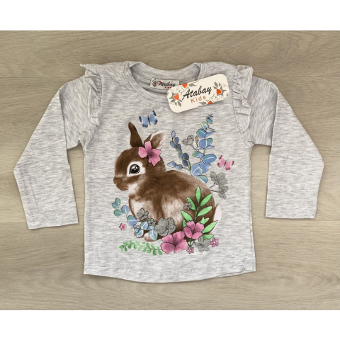 Nyuszi mintás, hosszú ujjú lány pamut felső. A nyomott minta nagyon szép, csillogós, tavaszi hangulatot idéző, a vállnál fodrok díszítik a felsőt. Teljes hossz: cm PONTOS CENTIMÉTER ADATOK HAMAROSAN!!! Ujjhossz (nyaktól): cm Ujjhossz