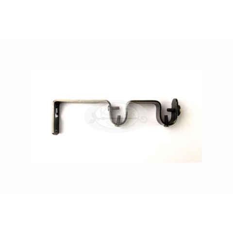 Óarany (antik arany, réz-antik) színű fémből készült hajlított tartó konzol 16 mm átmérőjű 2 rudas karnishoz. A faltáv kb. 15,5 cm. 1 db / csomag A csomag tartalmazza a felszereléshez szükséges tipliket és csavarokat is, valamint a karisrudat rögzítő k