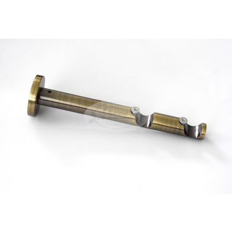 Óarany színű modern stílusú tartó konzol 19 mm-es 2 rudas karnishoz. 1 db / csomag Hossza: 20 cm (A fényáteresztő függöny kb. 13 cm, míg a sötétítő függöny kb. 18,5 cm-re fog lógni a fal síkjától.) A csomag tartalmazza a felszereléshez szükséges csava