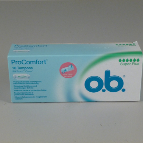 OB TAMPON PROCOMFORT SUPER PLUS 16 DB. Az o.b.® ProComfort™ tampon egyszerre két dolgot nyújt: egyesíti magában az o.b.® csavart bordázat technológiát a megbízható védelemért és a könnyű felhelyezést biztosító egyedülállóan selymes SilkTouch™ borítást