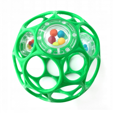 Oball Rattle csörgős játék 10 cm - zöld (0 hó+) Az Oball egy különleges, a babák apró ujjacskáihoz kialakított, rugalmas, lyukacsos labda. Fejlesztő és ügyességi játék egyben. A lyukas szerkezet révén könnyen tudják a picik kézben tartani, megmarkoln