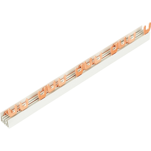 A kiváló minőségű, 3 fázisú sorolósínt a kompakt és megbízható csatlakoztatásra használják az elektromos elosztók építése során. Megkönnyíti a villanyszerelő számára az egyes fázisok hozzárendelését és a tájékozódást. A masszív vörösréz stiftek kapcsolók, biztosítékok és kábelek praktikus csatlakoztatására szolgálnak. A sín sokoldalúan kompatibilis 12 féle, kereskedelemben kapható kismegszakítóval. A vezeték keresztmetszete 10 mm2. A 28 cm hos
