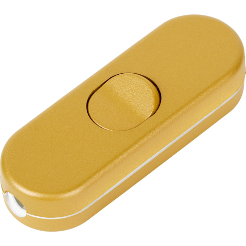 Az aranyszínű, stabil, közbenső zsinórkapcsoló kiválóan alkalmas a világítás kényelmes be- és kikapcsolásához. Az egypólusú kapcsoló beltérben 0,5 mm - 0,75 mm átmérőjű kábelekhez használható. Névleges feszültsége 250 V, névleges áramerőssége 3 A.