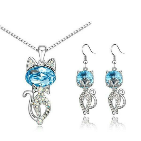 Tedd fel kérdésed a(z) Óceánkék cicás fülbevaló és nyaklánc szett termékről!