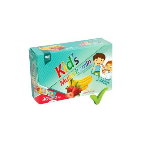 OCSO Kid's Multivitamin szájban oldódó granulátum étrend-kiegészítő - eper, banán ízesítésű 30 tasak/ doboz Összetevők: Fruktóz, Dextróz, Kalcium (kalcium-karbonát), C-vitamin (aszkorbinsav), aroma anyag (eper, banán), magnézium-sztearát, E-vitamin TE