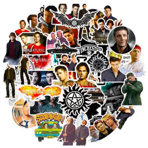 50 db egyedi és vízálló Odaát matricát tartalmazó csomag, amelyek tökéletesek bármilyen felület díszítésére. Tökéletes Supernatural ajándékok rajongóknak