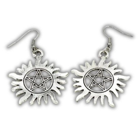 Ezüst színű Supernatural pentagrammás fülbevaló, egyedi dizájnnal és beakasztós stílussal, tökéletes ajándék minden Odaát rajongónak
