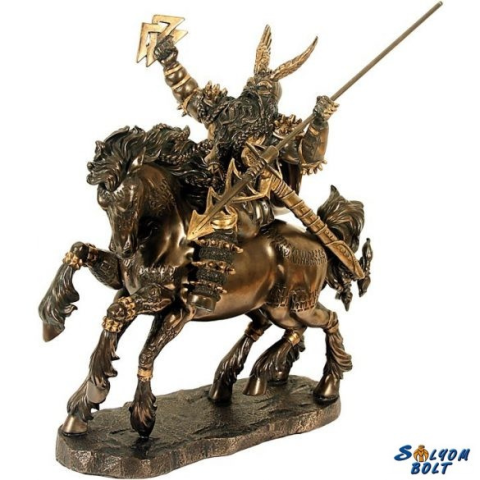 Odin isten szobra. Odin: Ő a legidősebb, legnagyobb és legbölcsebb isten a skandináv mitológiában. Ő a háború, a költészet és a halottak istene, valamint a legfőbb gyakorlója a mágiának Tervezte: Derek W. Frost Anyaga: polirezin Mérete: 25 x 20 cm