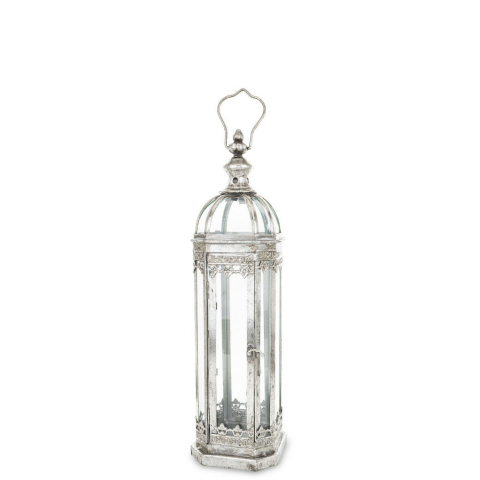 1 kép Óezüst fém üvegezett szögletes kerti lámpás lantern 55x13x13cm