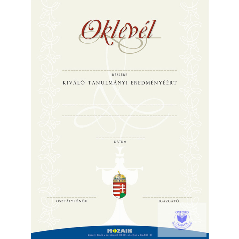 A csomag 20 db színes oklevelet tartalmaz A4-es (20,5 x 28,8 cm-es) méretben, fényes papíron, vonalazással, elsősorban kézzel történő kitöltésre javasoljuk. Kiadói kód: MS-8801H Kiadó: Mozaik Kiadó