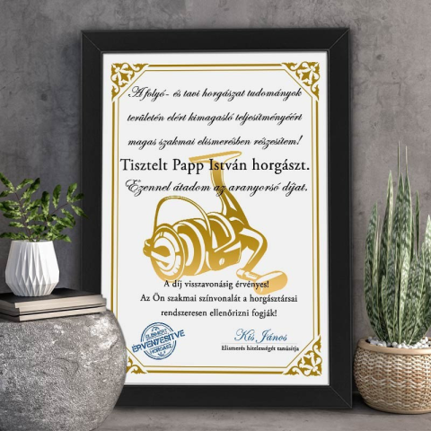 1 kép Oklevél horgászoknak - Aranyorsó díj