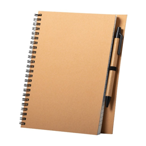 Újrahasznosított karton borítású spirálfüzet 80 db vonalas A5 méretű lapokkal. Tartalmaz egy újrahasznosított papírból készült golyóstollat kék tollbetéttel. Szín(ek) natúr Anyag(ok) Karton / Papír Méret 165×210×10 mm Rendelésre: 3-10 nap! A dekoráció n