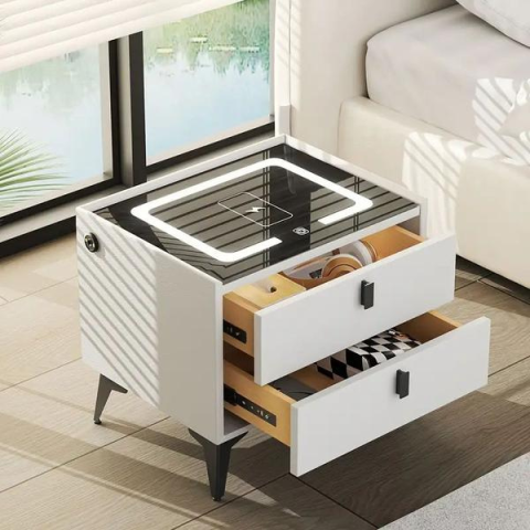 Teljes Okos éjjeliszekrény vezeték nélküli töltéssel — fehér 2 fiók GD320076-fh2 termékleírás