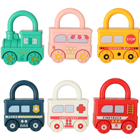Színes lakatos autókból álló készlet, amelyek összekapcsolhatók. Minden autóhoz csak egy kulcs illik. Nagyszerű szórakozás a logikus gondolkodásra és a kézügyesség gyakorlására. Anyaga: műanyag. Az autó méretei: Méretek: 7 cm x 9 cm