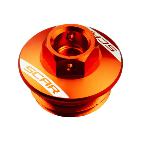 Olajfeltöltő Kupak Scar Alumínium KTM / Husqvarna NarancsA SCAR prémium alumínium lábtartóiról ismert, acél fogakkal, emellett számos prémium minőségű alumíniumból, titánból és szénből készült váz- és tuning alkatrészt gyárt.Olajfeltöltő kupak alumínium,