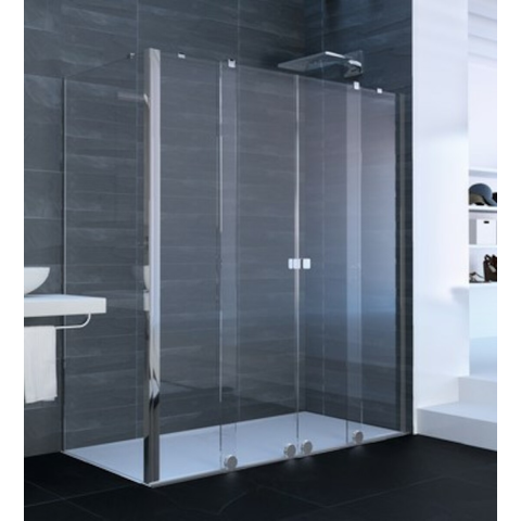Oldalsó paraván a zuhanyajtóhoz tálca nélkül fényes krómban, a felület átlátszó üvegből készült dekor nélküli. A Hüppe Anti-Plaque technológiával - a gyártás során alkalmazott felületkezeléssel, amely megkönnyíti a tisztítást, és lehetővé teszi, hogy a víz apró cseppek formájában folyjon le. Összecsukható nyitórendszer. Bal és jobb oldali tájolás is.