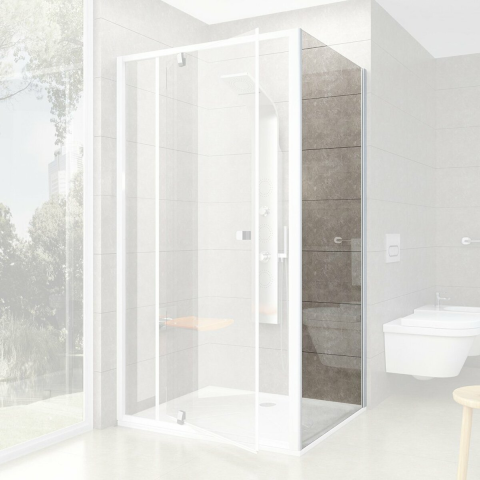 Oldalsó paraván a zuhanyajtóhoz tálca nélkül fehér színben, a felület átlátszó üvegből készült dekor nélküli. A RAVAK AntiCalc® technológiának köszönhetően az üveg víztaszító tulajdonságokkal rendelkezik, ami azt jelenti, hogy az üveg felülete víztaszítóvá válik. Összecsukható nyitórendszer. Bal és jobb oldali tájolás is.