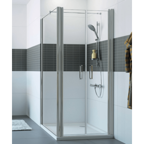 Oldalsó paraván a zuhanyajtóhoz mérete 200 cm. Összecsukható nyitórendszer. Bal és jobb oldali tájolás is. Profil fényes krómban , a felület átlátszó üvegből készült.