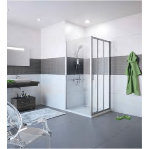 Oldalsó paraván a zuhanyajtóhoz mérete 200 cm. Összecsukható nyitórendszer. Bal és jobb oldali tájolás is. Profil fényes krómban , a felület átlátszó üvegből készült.