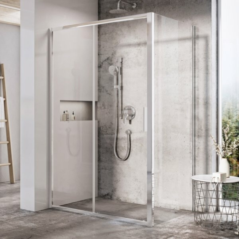 Oldalsó paraván a zuhanyajtóhoz tálca nélkül fényes krómban, a felület átlátszó üvegből készült dekor nélküli. A RAVAK AntiCalc® technológiának köszönhetően az üveg víztaszító tulajdonságokkal rendelkezik, ami azt jelenti, hogy az üveg felülete víztaszítóvá válik. Összecsukható nyitórendszer. Bal és jobb oldali tájolás is.