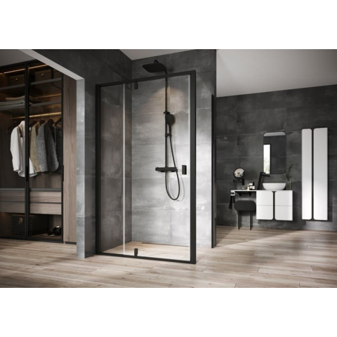FIGYELEM! Ez csak a zuhany 1/2 része, csak a másik felét kell megvásárolni a szükséges méretben. Oldalsó paraván a zuhanyajtóhoz tálca nélkül fekete színben, a felület átlátszó üvegből készült dekor nélküli. A RAVAK AntiCalc® technológiának köszönhetően az üveg víztaszító tulajdonságokkal rendelkezik, ami azt jelenti, hogy az üveg felülete víztaszítóvá válik. Összecsukható nyitórendszer. Bal és jobb oldali tájolás is.
