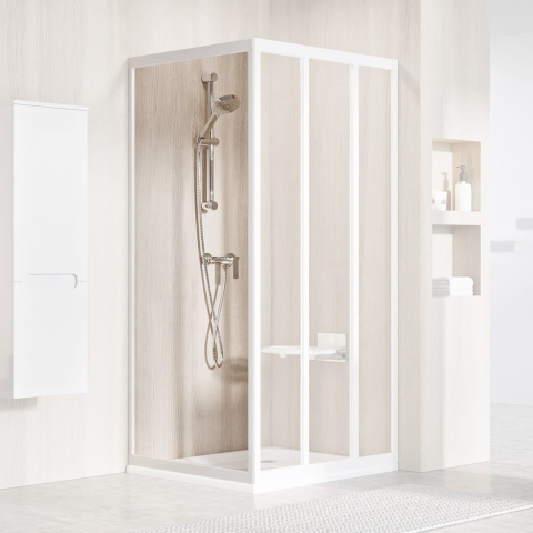 Oldalsó paraván a zuhanyajtóhoz, a felület átlátszó üvegből készült dekor nélküli. A RAVAK AntiCalc® technológiának köszönhetően az üveg víztaszító tulajdonságokkal rendelkezik, ami azt jelenti, hogy az üveg felülete víztaszítóvá válik. Összecsukható nyitórendszer. Bal és jobb oldali tájolás is.
