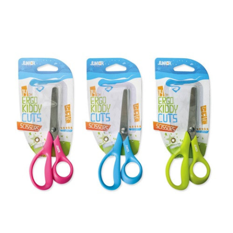 Olló Junior 14 cm iskolai vegyes színek olló gyerekek számára, mindennapi használatraA pengék rozsdamentes acélból készülteka lekerekített élvég biztonságossá teszi a gyerekek számáravonzó dizájn14 cm hosszú3 színben kapható. A szín rendeléskor nem vál