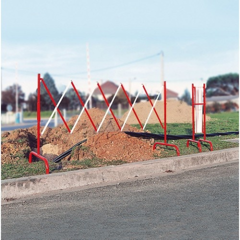 Ollós térelválasztó 4021 - A sport vagy kulturális rendezvényeken a szabadterület, illetve a parkoló elkerítésére szolgálnak. - Felületi kezelése:festett - 5 mm laposvas - Hossza: 400-3800 mm, magasság: 1100 mm - Használható a terület gyors elkeríté