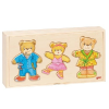 Öltöztethető macicsalád fa dobozban A játék segítségével a gyermek megismerkedhet a testrészekkel, a különböző ruhadarabokkal, mindezt játékos formában. 36 darabos készlet. A fa doboz mérete: 27 x 13,5 x 3,5 cm.