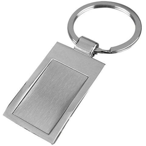 A kulcstartó teste fényes, krómozott kivitelü. A középső, gravírozható rész matt, szálrahúzott.