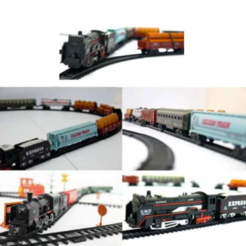 Önjáró játékvonat készlet mozdonnyal, vagonokkal és sínpályával kisvasút 1 kép