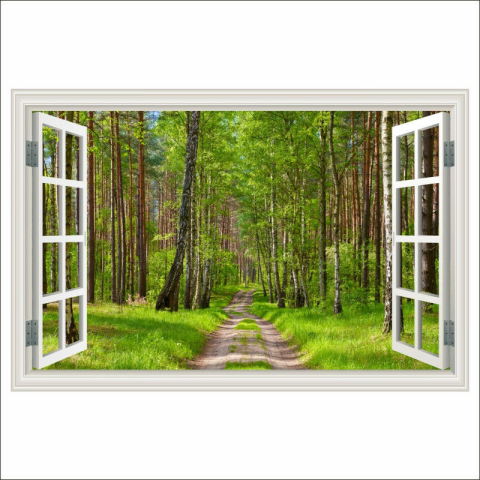 1 kép Öntapadó és mosható falfestmény Ablak út, erdő, nyár, 200 x 135 cm