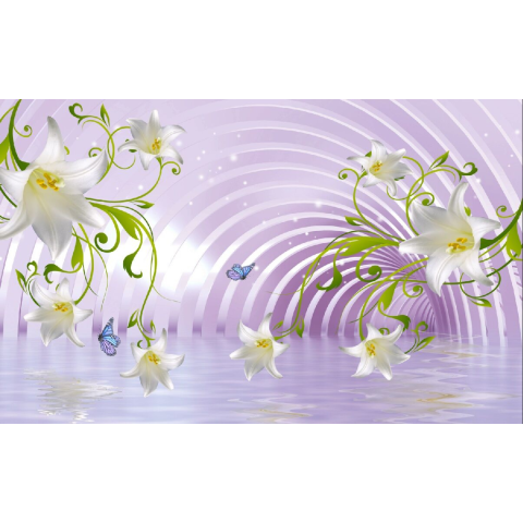 1 kép Öntapadó és mosható falfestmény Fehér liliomok és ívek, 400 x 250 cm