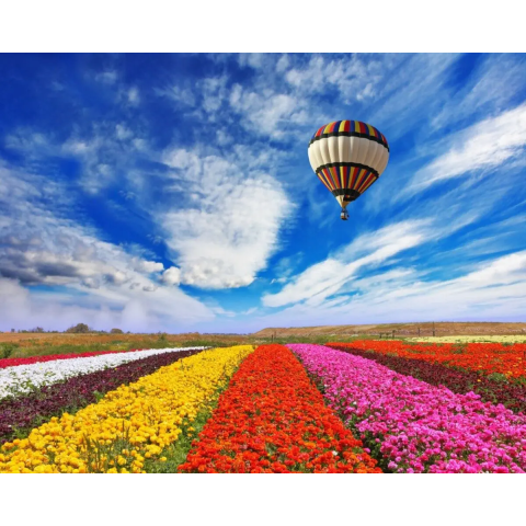 1 kép Öntapadó és mosható falfestmény Léggömb virágmező felett, 250 x 200 cm
