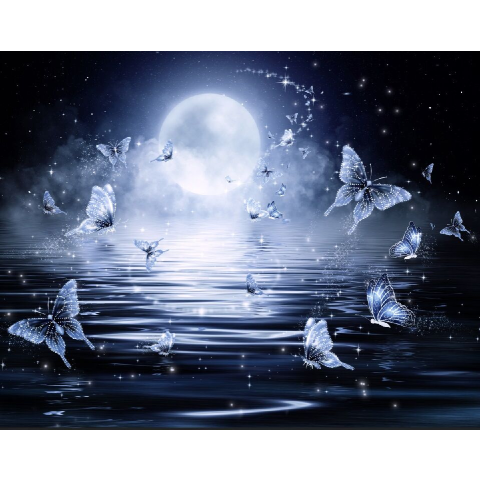 1 kép Öntapadó és mosható falfestmény Pillangók az éjszakai fényben, 400 x 250 cm