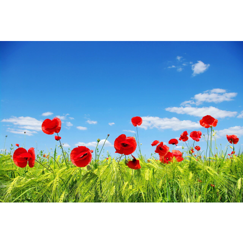 1 kép Öntapadó és mosható falfestmény Pipacsok kék éggel, 300 x 250 cm
